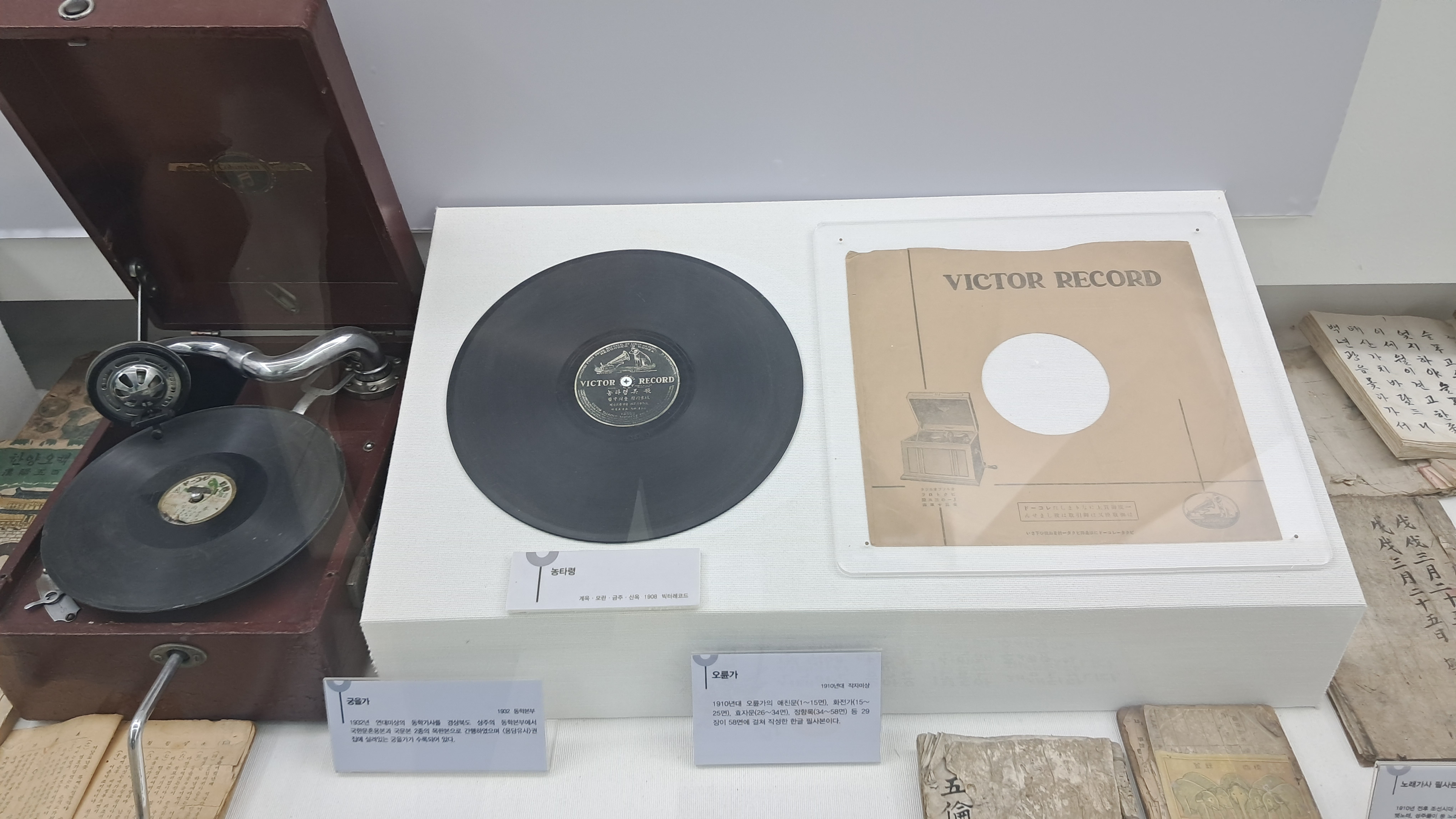 2층은 '대중음악 100년 사관'이라는 주제로 꾸며져 있었는데, 평소 음악에 관심이 많았던 저로서는 그야말로 보물창고였습니다. 1911년부터 연도별로 정리된 가수들의 자료, 귀한 레코드판, 앨범 재킷들이 빼곡히 전시되어 있었죠.